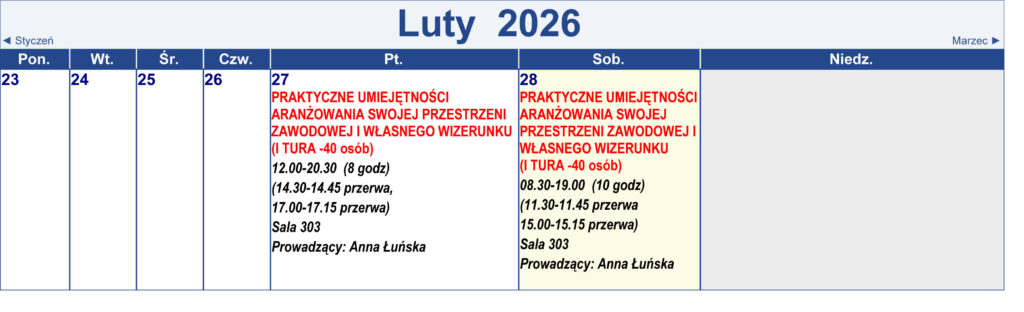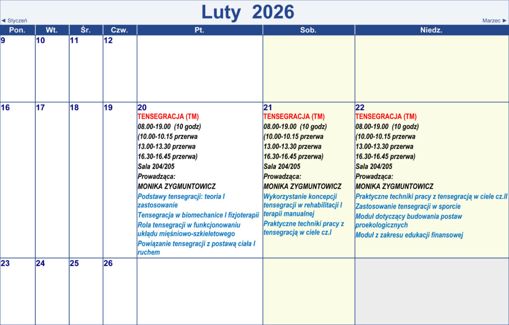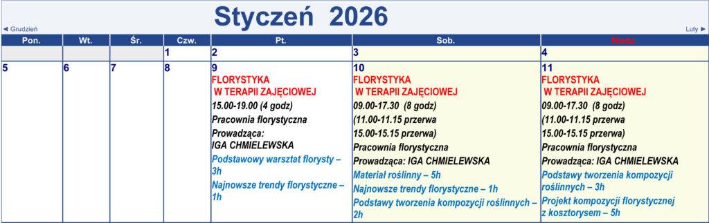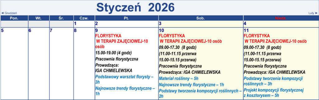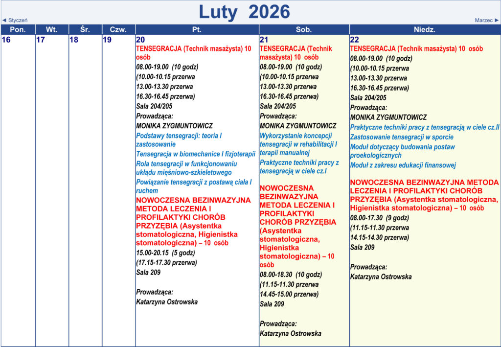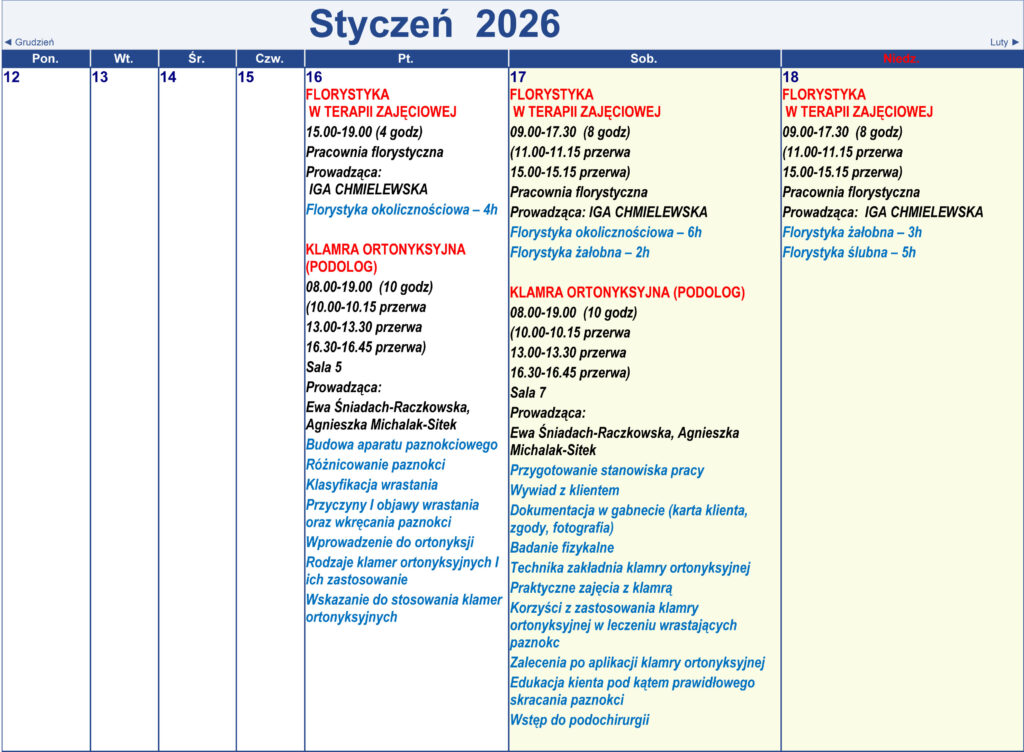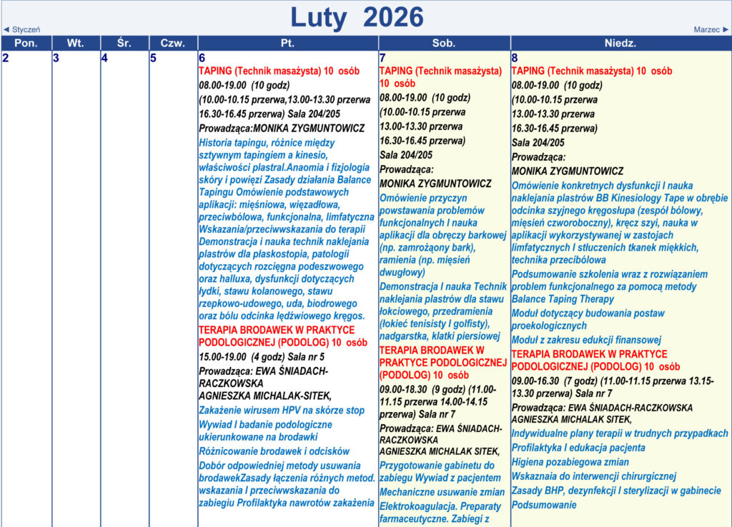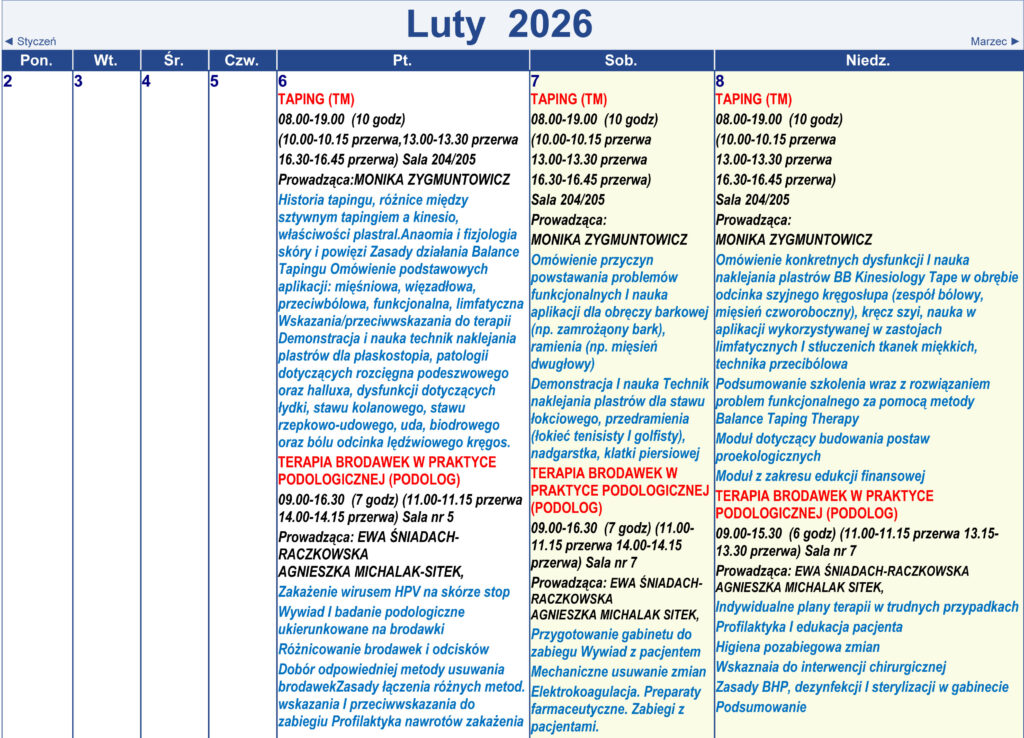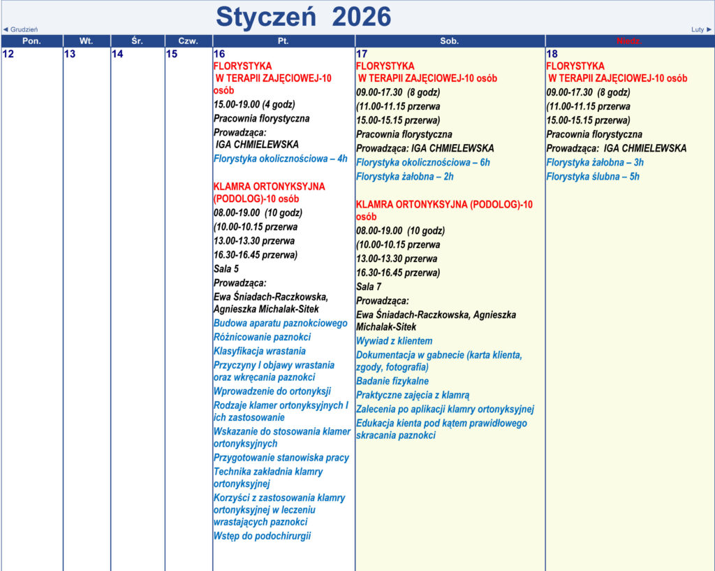 Harmonogram kursów i treningów