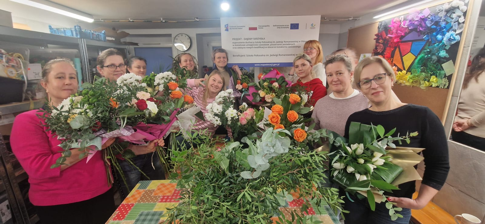 W ramach projektu „DAJEMY SKRZYDŁA”, realizowanego przez Szkołę Policealną im. Jadwigi Romanowskiej w Elblągu, florystyka jest kluczowym elementem wsparcia szkoleniowego skierowanego zarówno do słuchaczy, jak i kadry pedagogicznej. Działania związane z florystyką obejmują: